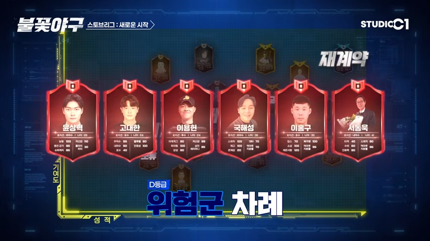 마지막으로 D그룹에서는 모든 선수들이 재계약에 실패하며 ‘불꽃야구’에서 하차하게 되었습니다.